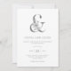 Estes convites de casamento modernos e minimalistas apresentam uma amante de cinza com flores elegantes e todos os seus convites de casamento em texto correspondente, num fundo branco limpo.