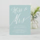 Linda Senhorita à Sra. chá de panela com um incrível roteiro de caligrafia moderno, em um fundo verde azul para uma simples elegância com um delicado dorso floral.