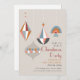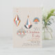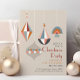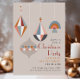 A stylish Christmas party invitation featuring a modern geometric design with retro-inspired baubles and a muted rainbow. The minimalist beige background and contemporary shapes create a chic look, perfect for trendy holiday gatherings. Personalize the details and set the tone for a fashionable festive celebration!