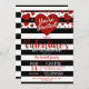 Celebrar com estilo com esses super modernos convites de festas de Dia de os namorados de corações vermelhos. A design apresenta um fundo preto e branco moderno, listrado, com efeito de brilho vermelho, corações de amor e palavras de tipografia correspondentes. A maneira perfeita de celebrar o amor deste dia de Valentin.