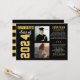Lindo Modelo de Invitacion de Graduado con estilo de graduado de secundaria con esta invitación de graduacióncon 2 fotos e invitación de fiesta. La tarjeta "Ahora y después", de dos caras, muestra dos fotos del Graduado (una foto actual y otra más antigua de su primer día de escuela) con un diseño simple y masculino con letras inspiradas en jersey deportivo. Los colores negro y dorado, hacen de esta invitacion una linda invitacion elegante para tu graduacion de Hombres o Mujeres **Consejo de fotos: recorta tus fotos en una forma cuadrada antes de subir.