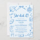 Convites Modern Hand Drawn She did it Blue Graduation Party