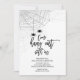 Um convite exclusivo de "saia conosco" para festas de halloween, com duas aranhas penduradas com a teia colocada num fundo branco, com um fundo negro de coordenação.