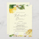 Este janto de ensaio amarelo de limão é perfeito para um ensaio de primavera ou de verão. O design mediterrânico rústico apresenta limões aquosos brilhantes e bonitos com flores brancas boêmicas e folhas verdes elegantes.
