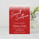 Este brilhante convite vermelho 16 apresenta uma fonte moderna com luzes de brilho brancas.