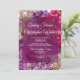 This modern wedding invitation features a rich magenta and plum abstract design accented with shimmering gold textures for a bold, elegant look. The layered alcohol-ink style background creates depth and movement, while refined script typography adds a soft, romantic contrast. The coordinating RSVP card includes a clean QR code layout, allowing guests to easily respond online and access additional wedding details.