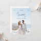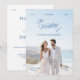 A sophisticated wedding invitation featuring an elegant handwritten script paired with clean serif typography in classic blue. Perfect for coastal weddings, French Riviera celebrations, and sophisticated minimalist wedding themes. The layout keeps the focus on names and typography, making it feel calm, airy, and elevated. Part of the coordinated wedding collection "Florence" — explore matching pieces across the full suite. Mockups for this design were created using Midjourney AI.
