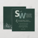 This minimalist wedding invitation features a sophisticated botanical design in deep forest green, exuding natural elegance and modern charm. The large monogram initials add a bold, contemporary touch, while delicate white leafy illustrations frame the date, creating a refined, nature-inspired aesthetic. Perfect for simple weddings and eco-friendly celebrations, this minimalist wedding stationery beautifully balances greenery, typography, and understated luxury — ideal for couples who love modern simplicity blended with organic botanical beauty.