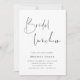 Invite guests to celebrate the bride to be with these modern and minimal double sided bridal shower lunch invitations by Redwood & Vine Design Co in classic black and white. Simple design features "bridal luncheon" in casual handwritten script, with your event details beneath in modern soft ash black lettering. Customize the back with additional details; shown with a recipe request, unwrapped gift (display shower) request, and a registry QR code.