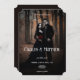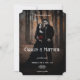 This design features your beautiful image centered in a moody, dark transparent spotlight overlay, creating a mysterious center for your personal photo. The font choice is vintage and elegant. The back is a soft charcoal black with a monogram of the couple's first initials. This design will work for both formal and casual weddings. Created by Simply Farmhouse Press.