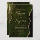 Convites Modern Olive Green Agate Gold Script Wedding