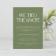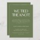 Modern Olive Green Wedding "We Tied the Knot!" Elopement Announcement & Reception Invitation. Add your elopement message, and reception "happily ever after party" invite info for family, friends and loved ones. Personalize further with bride and groom names, elopement date, and a wedding photo on the back.