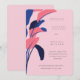 Convites Modern Pink and Navy Tropical Leaf Wedding Invitat