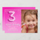 Convites Modern Pink Glitter Balloon 3rd Birthday Photo