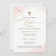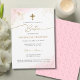 Modern Pink Gold Cross Girl Baptism Bautizo Invitation