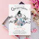 Este na moda | O convite de festas de Quinceañera possui um design de colheita moderno, com uma silhueta de aquarelas, com um vestido de princesa festiva rosa e azul, sobre um simples fundo branco e um ornamento retrovintage. As costas são cor-de-rosa pincelado. Os textos são personalizáveis, você pode personalizá-los para design o seu próprio convite chic para a sua festa de aniversário da princesa adolescente. Peça a sua agora!