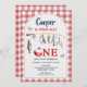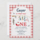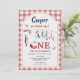 Modern Red Gingham Ofishally One 1st Birthday Invitation