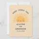 Celebrate with this trendy, customizable baby shower sticker featuring sunshine motifs, pastel rainbows, and playful typography. Perfect for water bottles, laptops, and favors. Personalize with date, family name, and welcoming message for a memorable event.