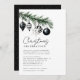 Rustic Nature Christmas Party Invitation - Our unique monochrome Christmas Celebration Invitation is so festive with modern, black and white Christmas ornaments hanging perfectly from a branch of fresh pine.