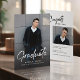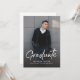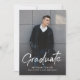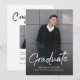 Modern script graduation announcement and invitation with photo, more photo and grad party information on the back, simple and casual.