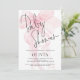 Modern Script Soft Pink Bow Baby Shower. Available digitally and printed. Minimalist style with a set elegant script for Baby Shower and easily personalise the rest of the text to your details. A coquette pink bow is tinted in the background with the words overlaid on top.