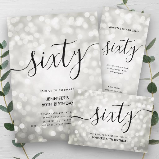 Silver Glitter Lights 60th Birthday Stationery SetCriado por Marta Burton