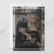 Elegant minimalist trendy monogrammed two photos wedding invitation featuring a modern contemporary moody black and white bold typography names dark transparent overlay. ++++++++++ Easy to personalize with your details, monogram name initials, and photos on the front and back. ++++++++++ It is suitable for any season chic contemporary formal weddings. +++++++++++++ Colors of typography, frame, and background can be changed to match your we dding color palette.