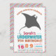 Natação o caminho para esta tomada moderna do clássico mundo submarino/aquário infantil. Disponível em 3 cores diferentes, azul e laranja, rosa e laranja, marinho azul e verde. Imprima seus convidados com este convite elegante e divertido perfeito para começar a festa!