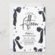 Modern stylish birthday party invitation black watercolor bow and modern script. Classy and elegant, simple and modern invitation.