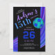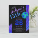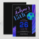 A modern and energetic invitation card created for a teen soccer birthday celebration, featuring a bold black base with cool blue and purple motion accents, contemporary typography, and a clean soccer graphic, with all text, numbers, colors, and design elements fully editable to create a stylish, sporty, and personalized birthday invitation that’s perfect for teens who love modern sports-inspired designs.