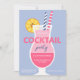 This vector invitation is designed for a cocktail party at someone’s home. It features a large cocktail glass with straws and a lemon slice.