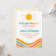 A modern sunshine baby shower invitation featuring bold warm tones, a cheerful sun illustration, and a clean contemporary layout. The bright yellow and vibrant accents create a fresh and energetic atmosphere while keeping the joyful sunshine theme at the center. Perfect for stylish baby shower celebrations with a bright, modern aesthetic.