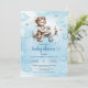 Convites Modern Teddy Bear Pilot Blue Brown Boy Shower