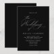 Convites formais de casamento com um roteiro de estilo vintage. Fonte branca em um fundo preto contrastante. Simples e elegante.