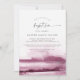 Este moderno convite para batismo vermelho-aquarela é perfeito para um batismo bebê contemporâneo na moda. A coleção de design minimalista, clássica e elegante apresenta traços simples de pincel de cor de água em tons de joias bonito.