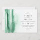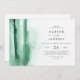 Este convite de casamento horizontal verde-aquarela moderno é perfeito para um casamento contemporâneo na moda. A coleção de design minimalista, clássica e elegante apresenta traços simples de pincel de cor de água em tons de joias bonito.