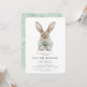 Modern Watercolor Easter Dinner Invitation features an adorable watercolor bunny all decked out in his pastel green polka dot bowtie.
