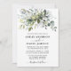 O Cartão de Convite para Casamento Azul Dusty, de Cor Biológica Elegante Moderna, inclui folhas de eucalipto, folhagem botânica verde, folhas azuis empoeiradas e outros belos lençóis botânicos.