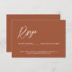 Keep your wedding stationery chic and convenient with this Modern Terracotta Wedding RSVP Card. Designed in a warm, earthy rust tone with elegant white script, this minimalist card perfectly complements boho, rustic, or modern wedding suites.
