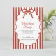 Modern Whimsical Bow Illustrated Christmas Party Invitation featuring red and white stripes, script typography, all wrapped up in a red bow. The perfect invitation for your company or family Christmas party!