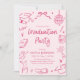 Convites Modern Whimsical Hand Drawn Pink Graduation Party
