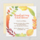 Convide seus convidados em estilo com estes convites contemporâneos de Ação de Graças. A placa tem um anel de folhas em amarelo e laranja. As informações vitais do participante são definidas em fontes fáceis de ler. Estes convites de agradecimento são cartões quadrados e irão destacar-se acima do resto.