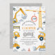 Modern Yellow Grey Construction 1st Birthday Invitation