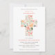 Convites Moderna Cruz Floral Blush Peach Primeira Comunhão