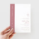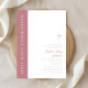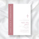 Convite de Primeira Comunhão de Menina Moderna Elegante Cruz Rosa.