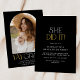 Este moderno ouro negro fete que ela fez foi um convite para a graduação de fotos é perfeito para uma festa de formando moderno para ela. A design apresenta uma elegante tipografia de boho com um toque de estilo sofisticado em preto escuro clássico e ouro amarelo. Personalize a parte de trás do seu convite para formando com uma foto do formando, nome, escola e ano de aula.