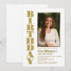 Convide seus amigos e entes queridos com este branco moderno com um convite de aniversário personalizado de fotos em texto dourado. O texto pode ser personalizado para qualquer idade.