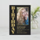 Convide seus amigos e entes queridos com este negro moderno com convite de aniversário personalizado de fotos em texto dourado. O texto pode ser personalizado para qualquer idade.