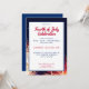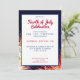 Convite moderno para comemoração de 4 de julho. Personalize este modelo de convite de festas de 4 de julho para a celebração do dia da independência com amigos e familiares. Possui fundo de fogos de artifício e design elegante