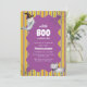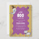 Um pequeno boo está quase a chegar! chá de fraldas tema, chá de fraldas de halloween, design apresentar um fantasma bonitinho com chapéu de bruxa, gato poema fofo com gravata arco e teia de aranha no quadro ondulado no cor laranja de halloween, roxo, faixa verde. você pode personalizar sua própria cor e texto. queda divertida moderna, chá de fraldas de outubro de outono, este é design neutro de gênero perfeito para ser bebê, menino e chá de fraldas.